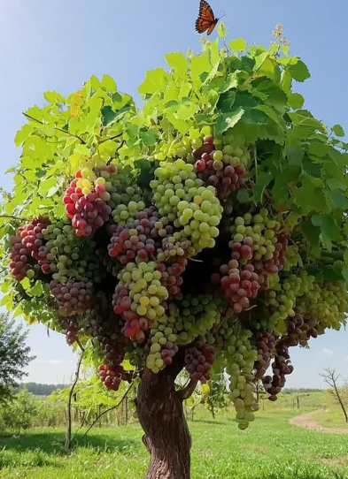 🌿 5. Figyelje, ahogy nőnek: Lugasok vagy támasztékok nélkül ezek a szőlőtőkék erősek és egészségesek lesznek, finom, mag nélküli fürtöket hozva.